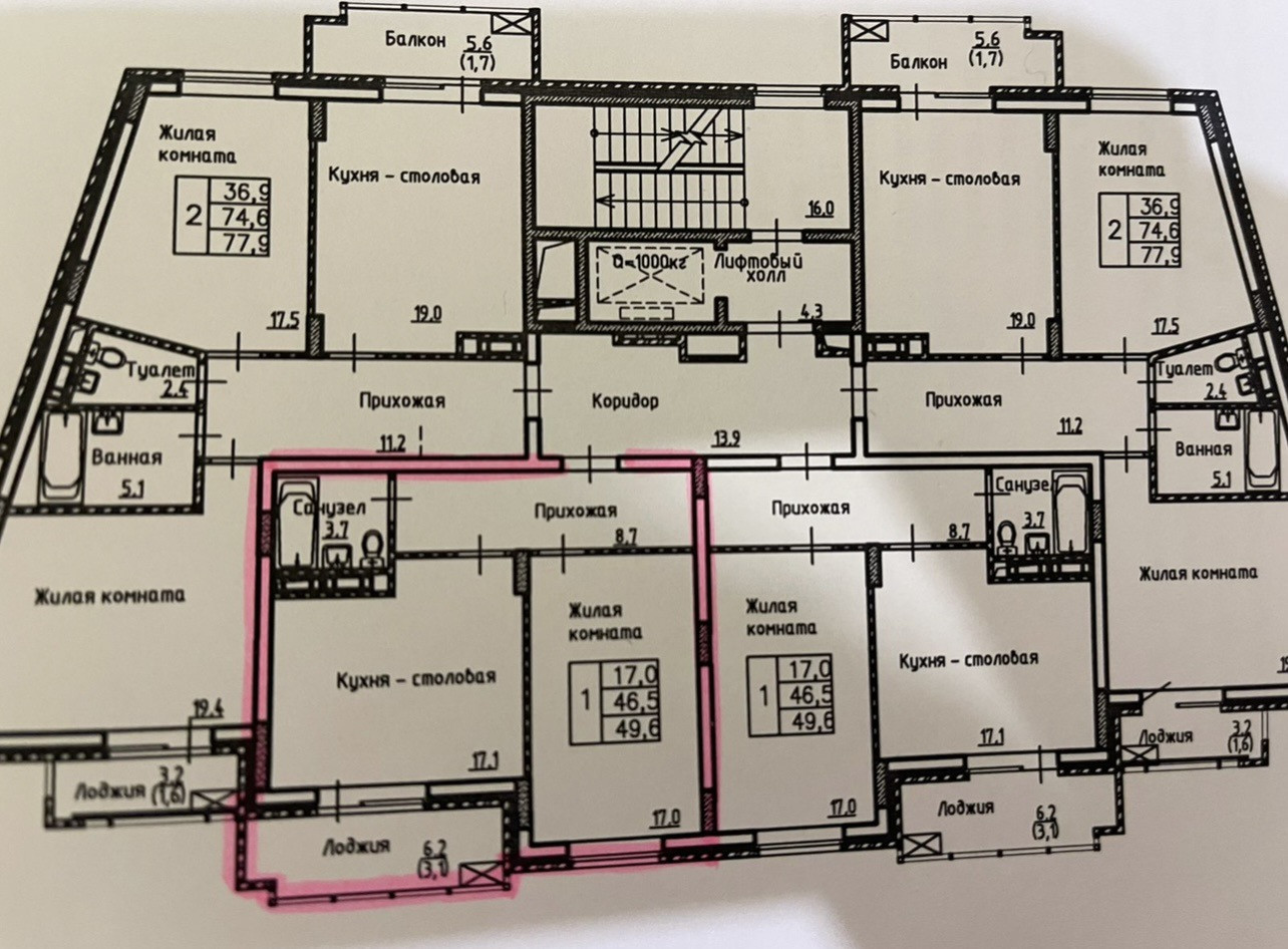 Общая площадь 49.6 м2
