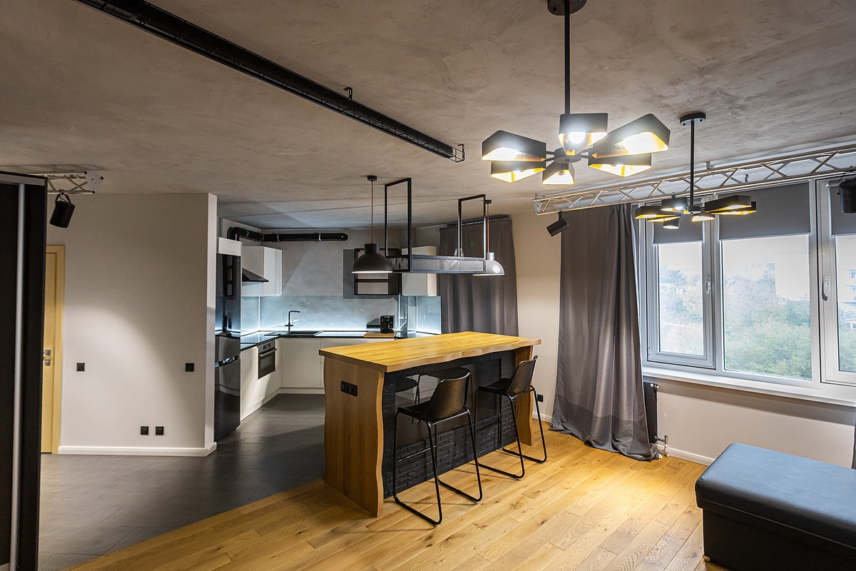 В квартире выполнен качественный стильный авторский ремонт с использованием дорогих отделочных материалов, который делали для себя. Функциональная планировка: просторная кухня-гостиная, спальня в которой зонирование под рабочую зону, сан.узел с потрясающим освещением.