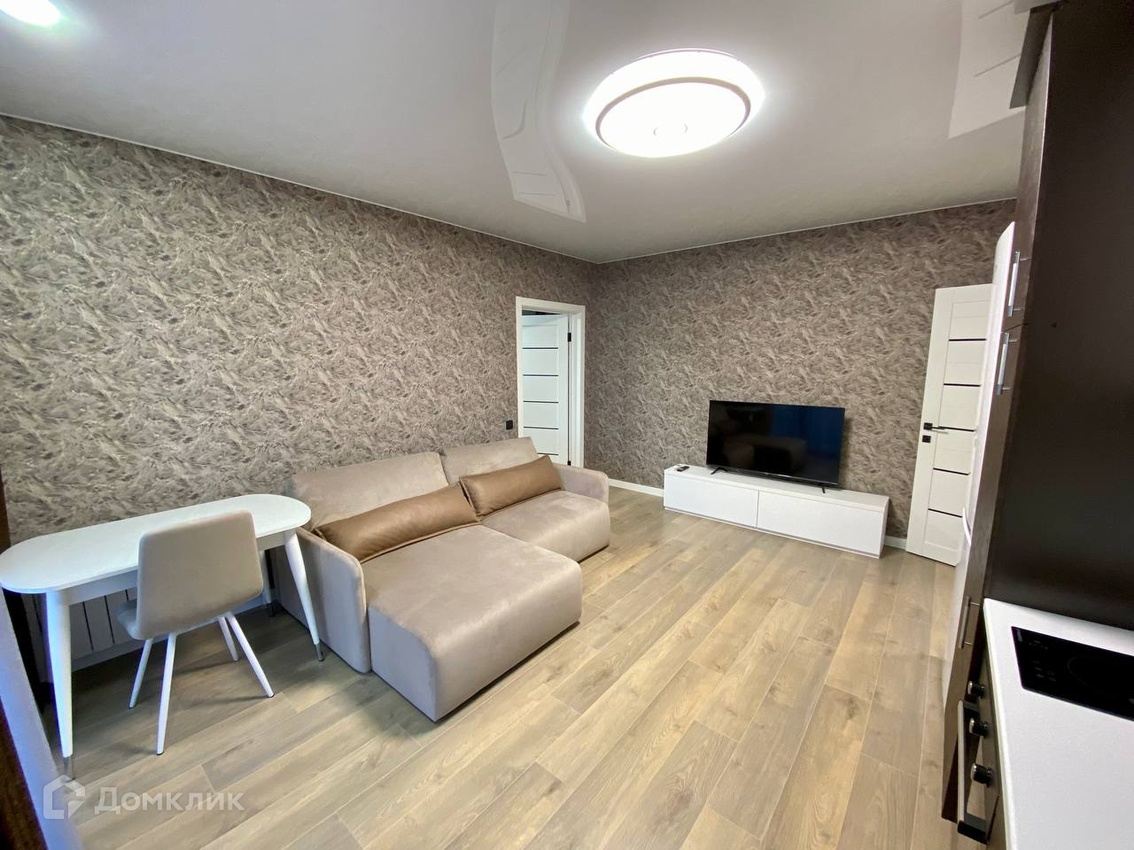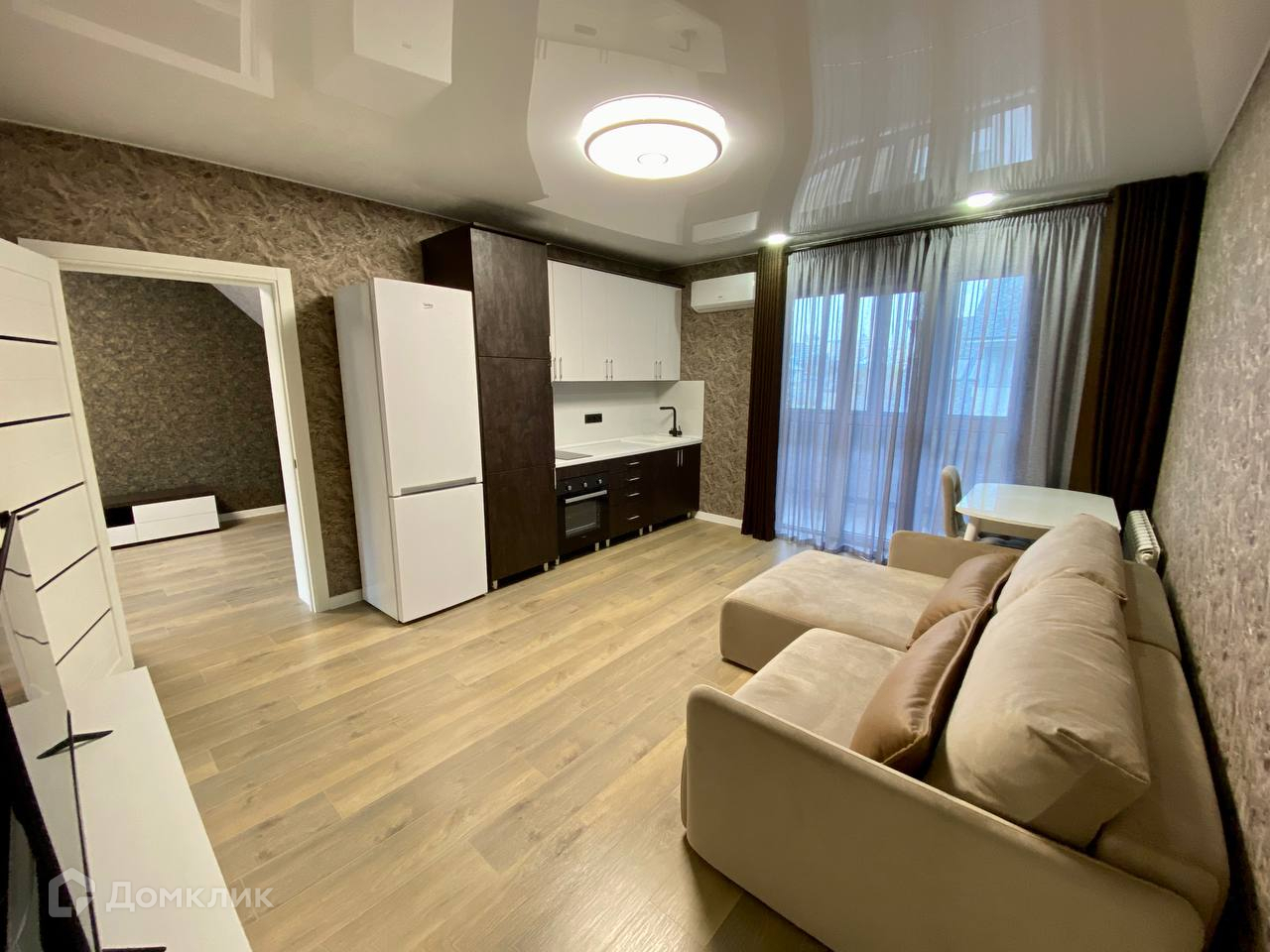 Функциональная планировка: просторная кухня-гостиная, спальня в которой зонирование под рабочую зону и зону отдыха, сан.узел с потрясающим освещением.