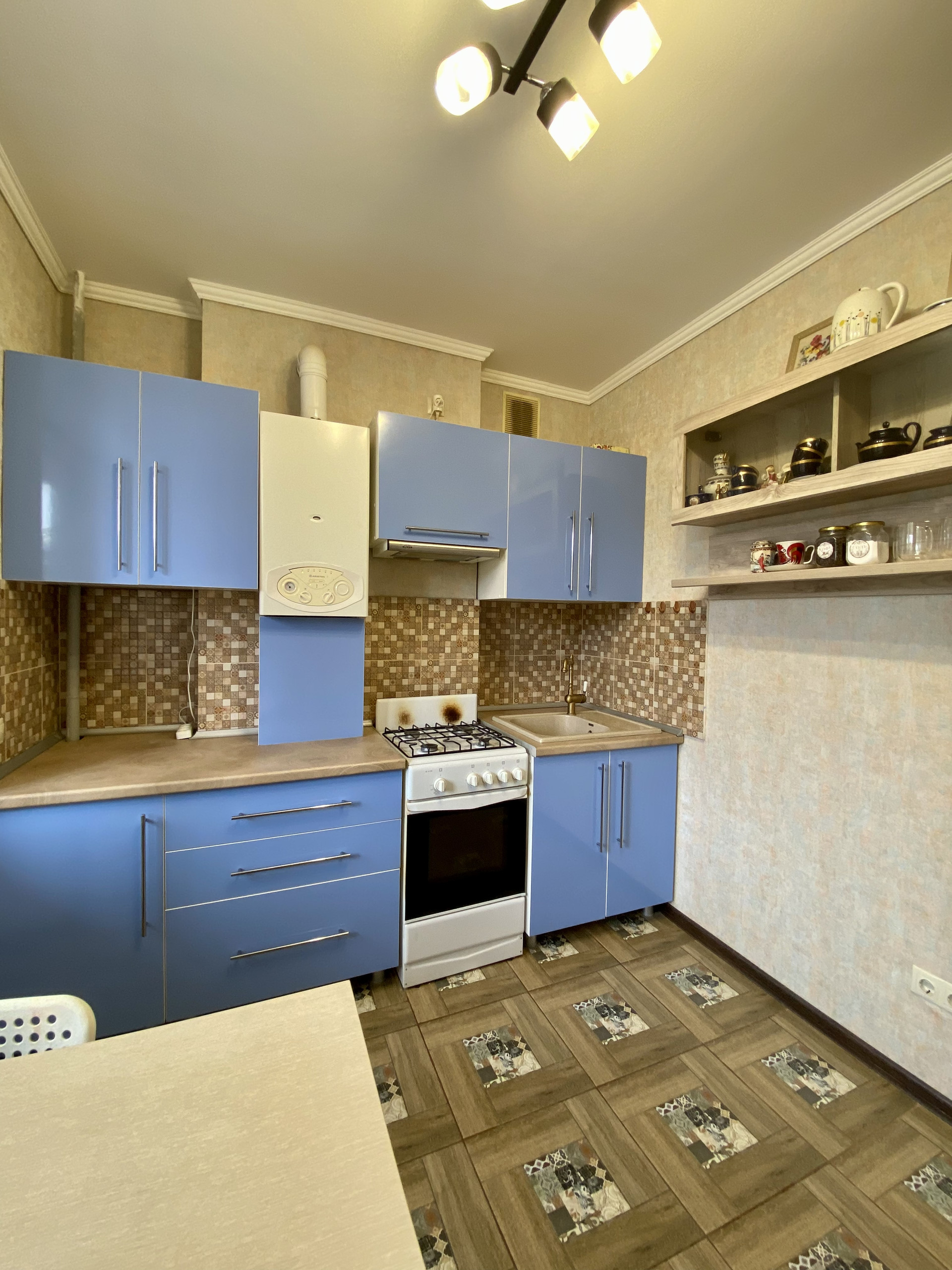 Просторная комната и кухня. Много света. Балкон застеклен. Установлен газовый котёл, с помощью которого вы сами регулируете подачу горячей воды, отопления и платите по индивидуальным счетам. В подарок новым жильцам остаётся кухонный гарнитур, шкаф в прихожей и ванной. А также подвальное помещение площадью 6 кв.м.