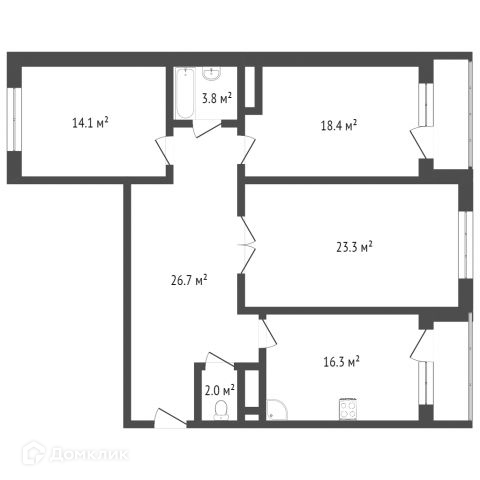 Квартира на 17 этаже, общей площадью 106,5 м2. Просторная и рациональная планировка.