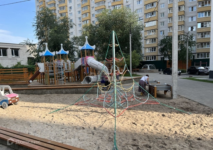 Евродвушка. На территории жилого комплекса всего 3 дома. Въезд через КПП. Есть хорошие детские площадки, спортплощадка (баскетбол/футбол), фонтан и беседки.