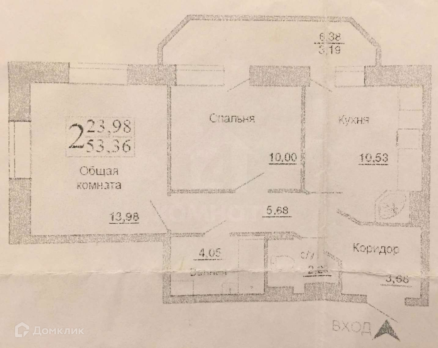 Общая площадь 53.36 м2
