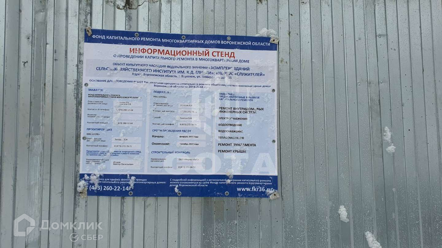 1-комнатная квартира, 19.5 м2, этаж 1 / 3, на продажу в Воронеже, улица Тимирязева, 15