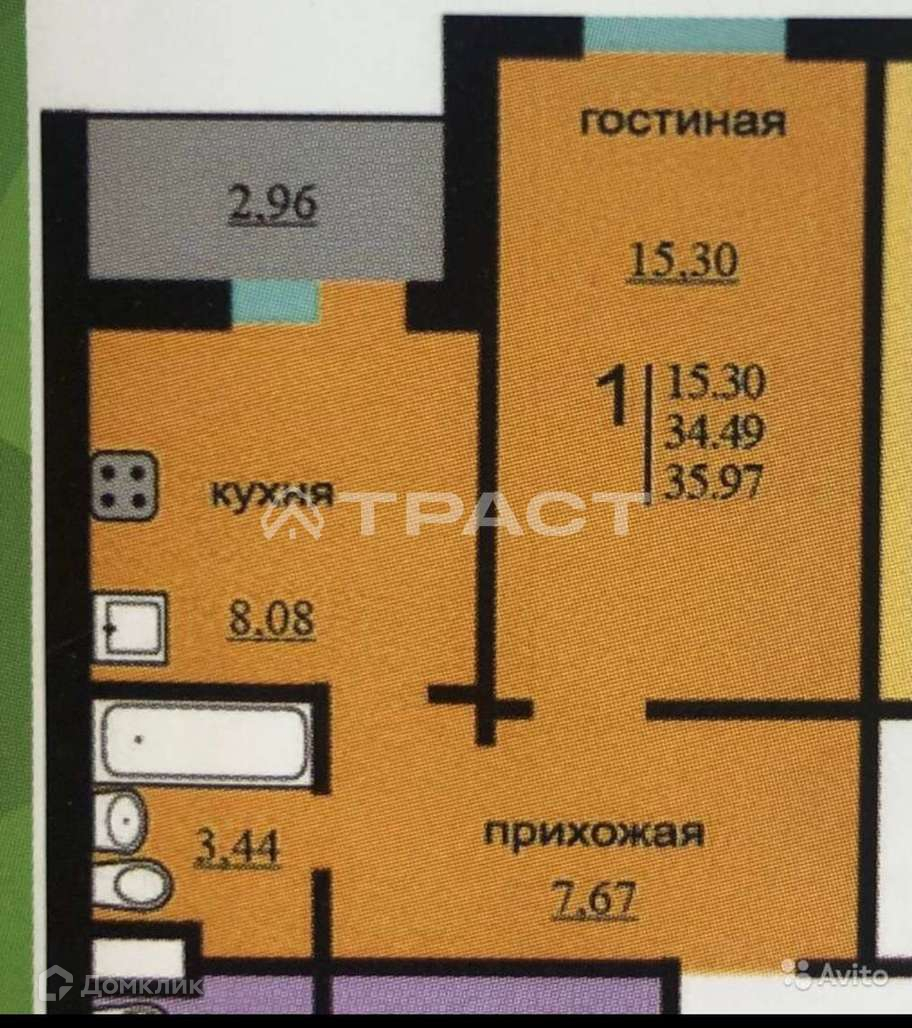 Общая площадь 36 м2
