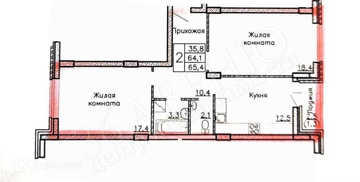 Общая площадь 65.4 м2