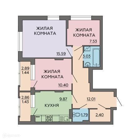 3-комнатная квартира, 65.49 м2, этаж 10 / 10, на продажу в Воронеже, улица 121 Стрелковой Дивизии, 9