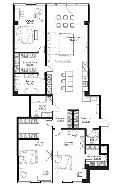 Продаются апартаменты, в сданном доме, общей площадью 190,6 кв.м., на 17 этаже. В самом центре Воронежа реализуется амбициозный проект многофункционального комплекса "Галереи Чижова" Жителям апартаментов доступны: благоустроенная крышная терраса порядка 4000м2 на высоте 70м над уровнем земли единственная в городе сертифицированная вертолётная площадка огороженный благоустроенный внутренний дворик, площадью 4000м2, расположенный на отметке 40м над уровнем земли зоны общего пользования с отделкой из натурального камня, подземная парковка, фитнес клуб World Class с 25-метровым бассейном, гостиничные сервисные услуги (консьерж, горничная, прачечная), услуги управляющей компании (служба эксплуатации, медкабинет также услуги по организации мероприятий, кейтеринг, event), сервисные услуги от службы безопасности. Резиденции расположены в центре города Воронеж, в 17 этажном здании, возвышающемся над комплексом Галерея Чижова и занимают 11 верхних этажей. Даже с самых нижних резиденций, расположенных на уровне 35 метров от земли, открывается уникальная панорама на город. Комплекс венчает крышная терраса с обзором в 360 градусов. Во всех помещениях резиденций выполнено панорамное остекление, модульными фасадами немецкой компании Hueck, стекло закрывает пространство от пола до потолка. По планировке в каждом помещении открывающееся окно или французский балкон. Здание оборудовано современными инженерными коммуникациями: системами централизованного кондиционирования воздуха, вентиляции, фильтрации и очистки воды. Здание оснащено скоростными лифтами немецкой фирмы Тиссен Крупп (ThyssenKrupp). На первом этаже располагается ресепшн. Комплекс находится под круглосуточной охраной, действует система контроля доступа в здание.