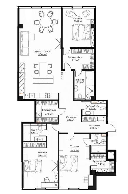 Продаются апартаменты, в сданном доме, общей площадью 189,7 кв.м., на 12 этаже. В самом центре Воронежа реализуется амбициозный проект многофункционального комплекса "Галереи Чижова" Жителям апартаментов доступны: благоустроенная крышная терраса порядка 4000м2 на высоте 70м над уровнем земли единственная в городе сертифицированная вертолётная площадка огороженный благоустроенный внутренний дворик, площадью 4000м2, расположенный на отметке 40м над уровнем земли зоны общего пользования с отделкой из натурального камня, подземная парковка, фитнес клуб World Class с 25-метровым бассейном, гостиничные сервисные услуги (консьерж, горничная, прачечная), услуги управляющей компании (служба эксплуатации, медкабинет также услуги по организации мероприятий, кейтеринг, event), сервисные услуги от службы безопасности. Резиденции расположены в центре города Воронеж, в 17 этажном здании, возвышающемся над комплексом Галерея Чижова и занимают 11 верхних этажей. Даже с самых нижних резиденций, расположенных на уровне 35 метров от земли, открывается уникальная панорама на город. Комплекс венчает крышная терраса с обзором в 360 градусов. Во всех помещениях резиденций выполнено панорамное остекление, модульными фасадами немецкой компании Hueck, стекло закрывает пространство от пола до потолка. По планировке в каждом помещении открывающееся окно или французский балкон. Здание оборудовано современными инженерными коммуникациями: системами централизованного кондиционирования воздуха, вентиляции, фильтрации и очистки воды. Здание оснащено скоростными лифтами немецкой фирмы Тиссен Крупп (ThyssenKrupp). На первом этаже располагается ресепшн. Комплекс находится под круглосуточной охраной, действует система контроля доступа в здание.