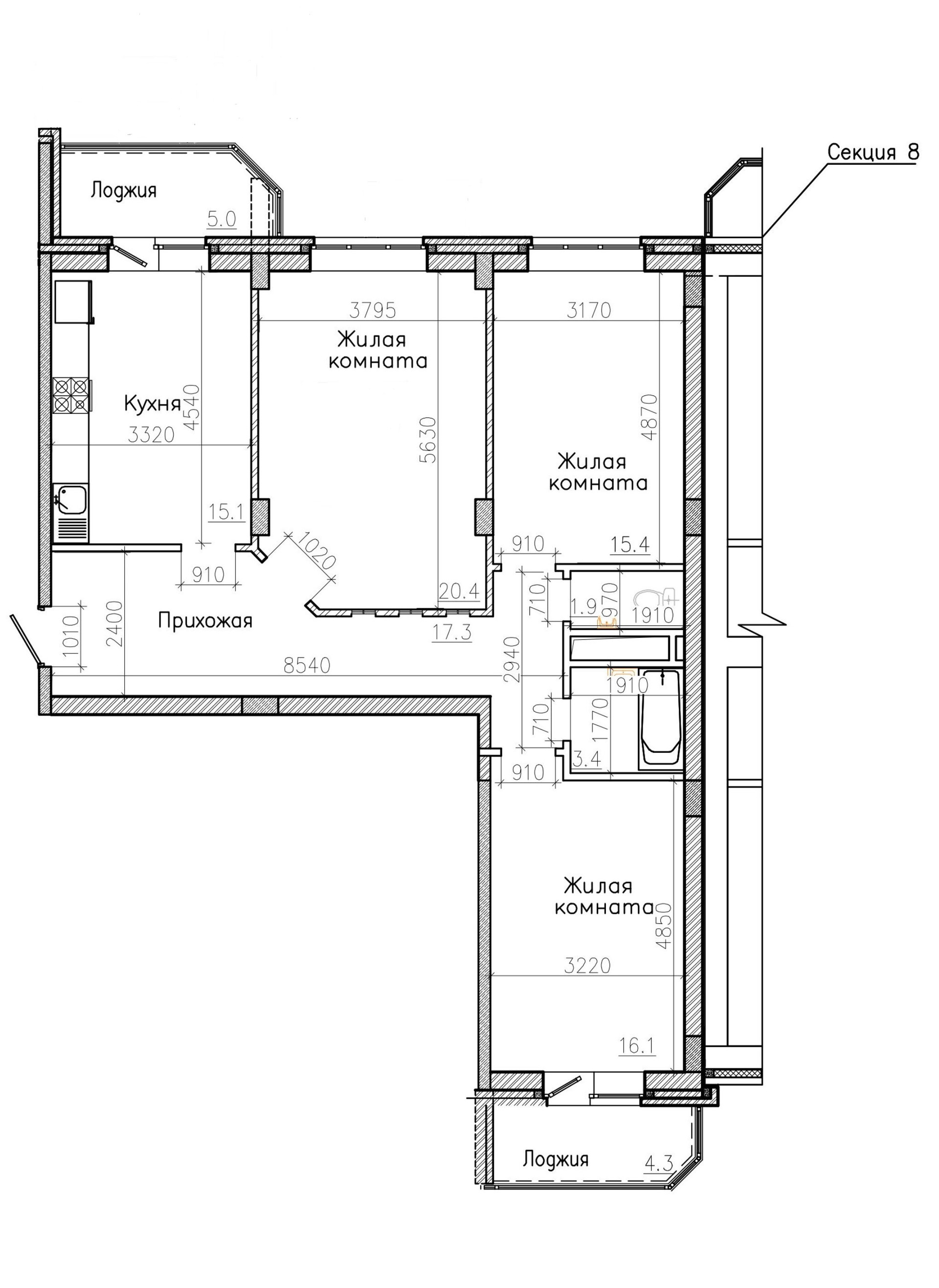 Количество комнат 3