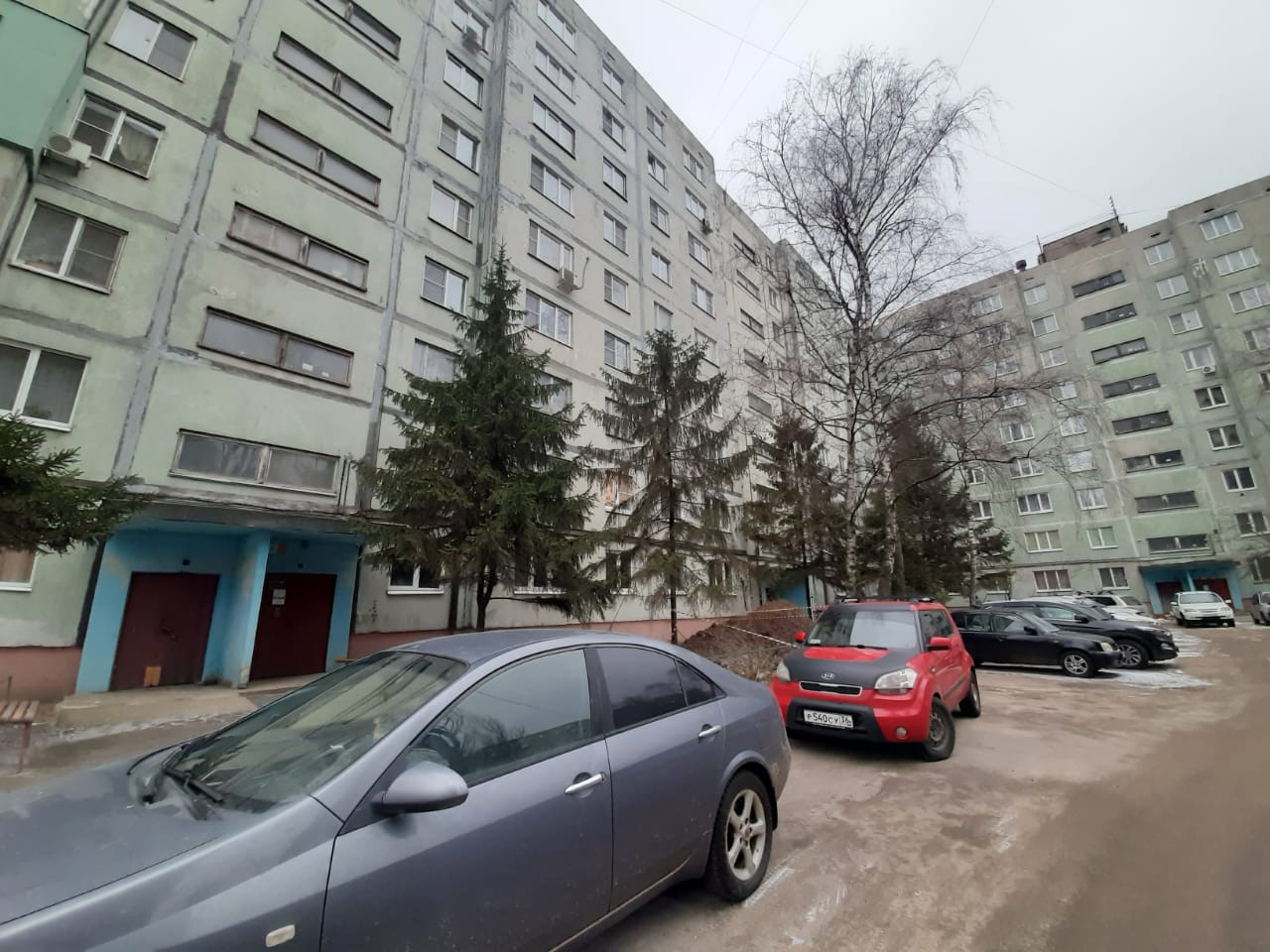 Высокий первый этаж, тамбур на две квартиры, чистый, сухой подъезд.