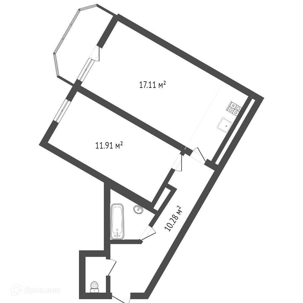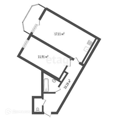 Кухня-гостиная 17.2 м2, комната 11.9 м2.