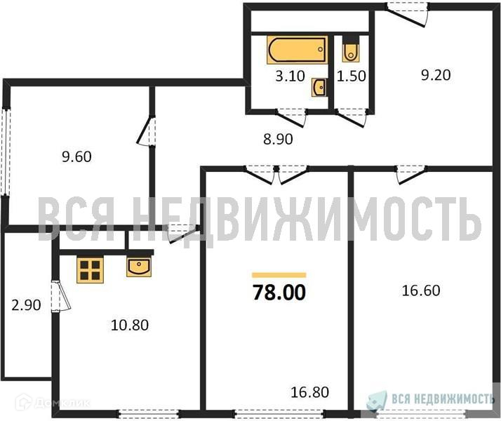 Общая площадь 77.2 м2