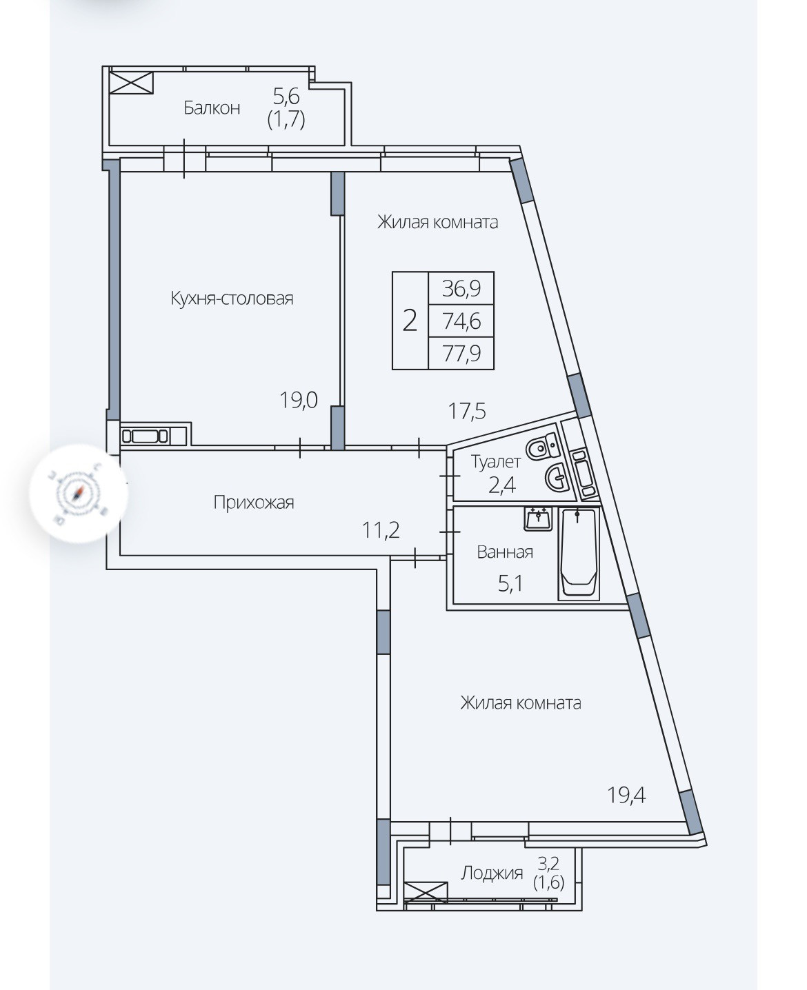 Общая площадь 77.9 м2