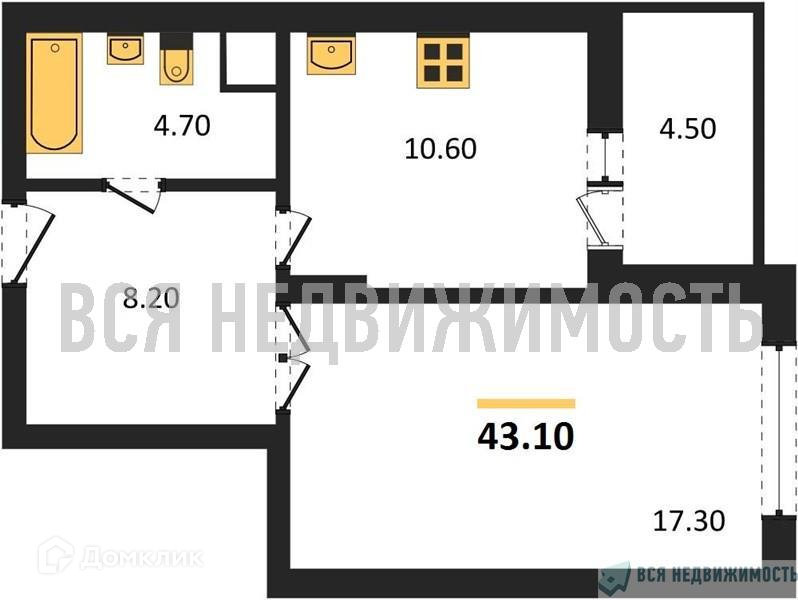 Общая площадь 43.1 м2
