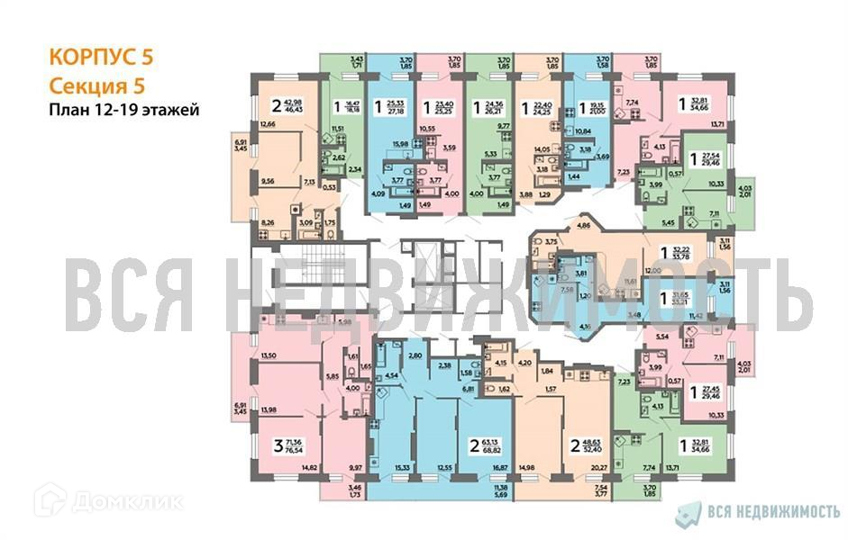 2-комнатная квартира, 76.54 м2, этаж 18 / 19, на продажу в Воронеже