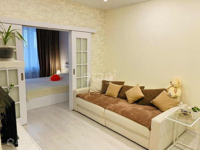 Удачная планировка (Комната разделена на гостевую и спальную зону)в евро двушку,которая позволяет рационально использовать пространство.