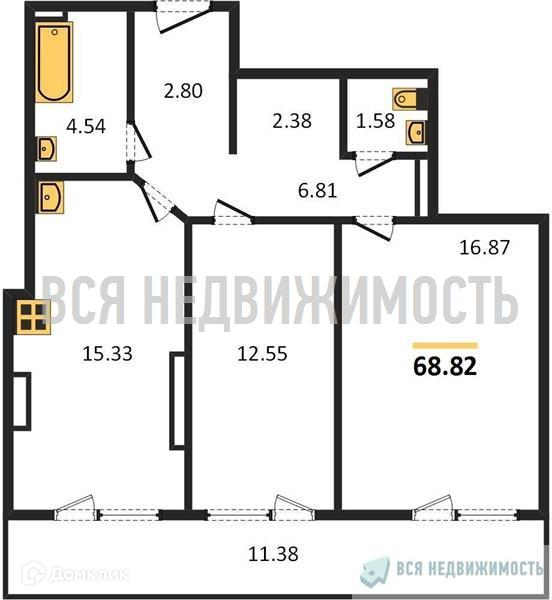 Общая площадь 68.82 м2