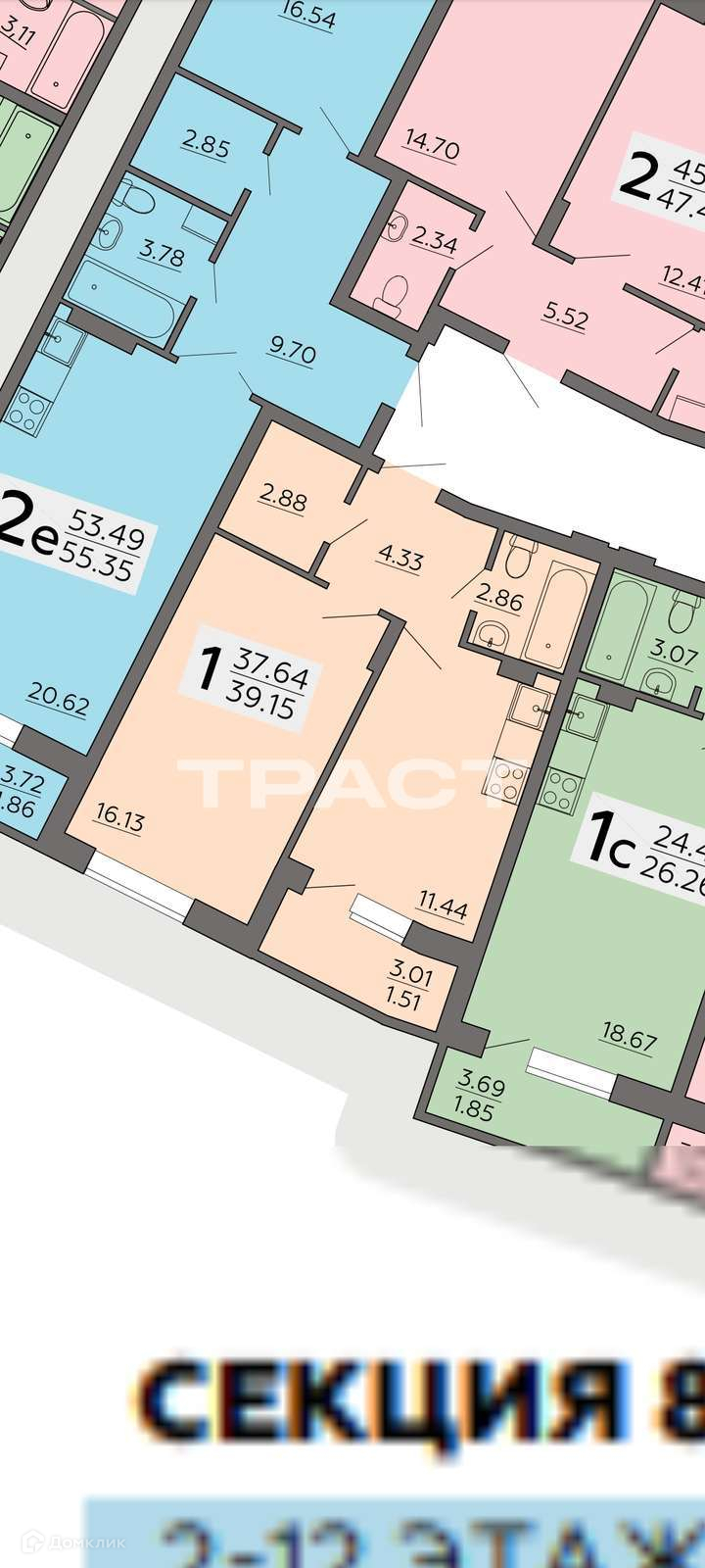 Общая площадь 39.1 м2