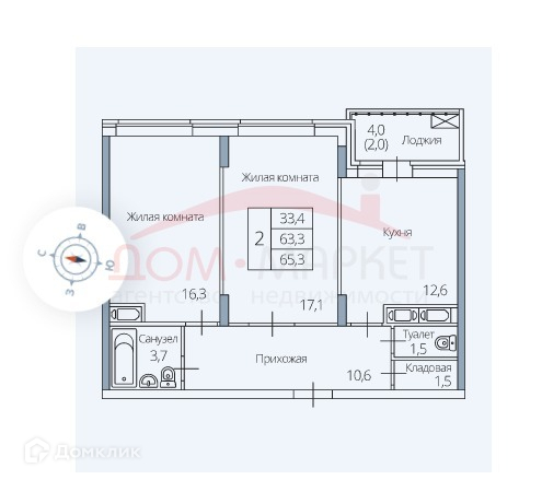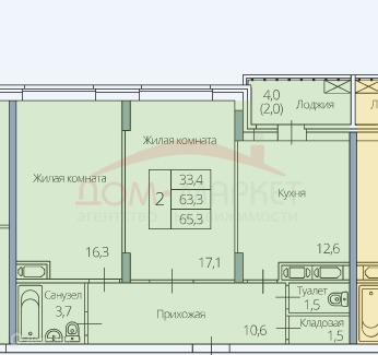 Общая площадь 65.3 м2