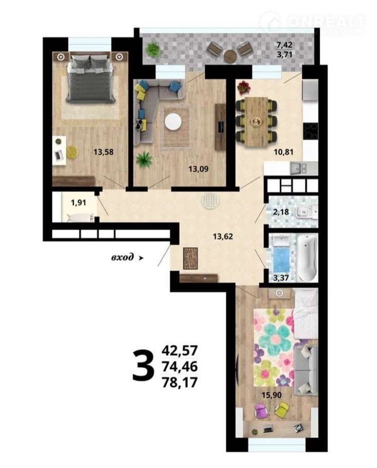 Общая площадь 78.2 м2