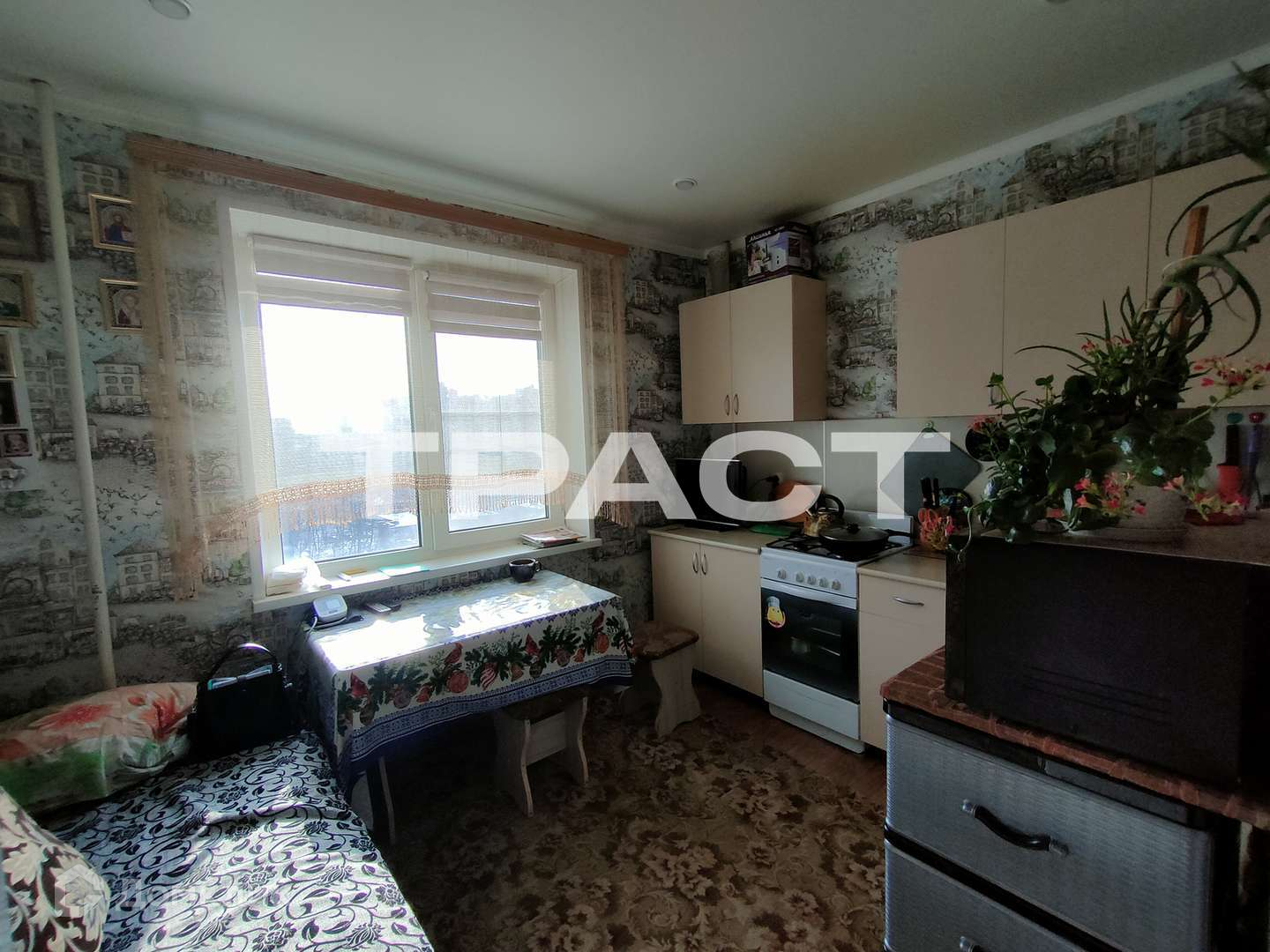 Квартира в хорошем состоянии с большой кухней, где стоит даже диван, что редкость для таких домов.