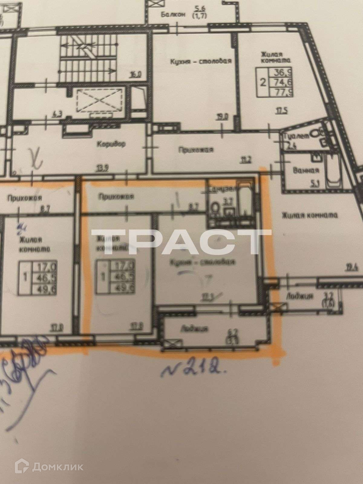 Общая площадь 49.6 м2