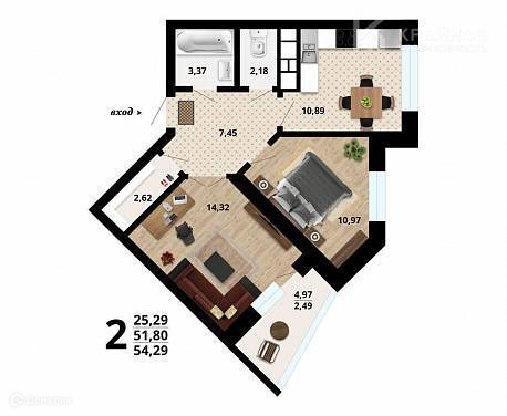Общая площадь 54.29 м2
