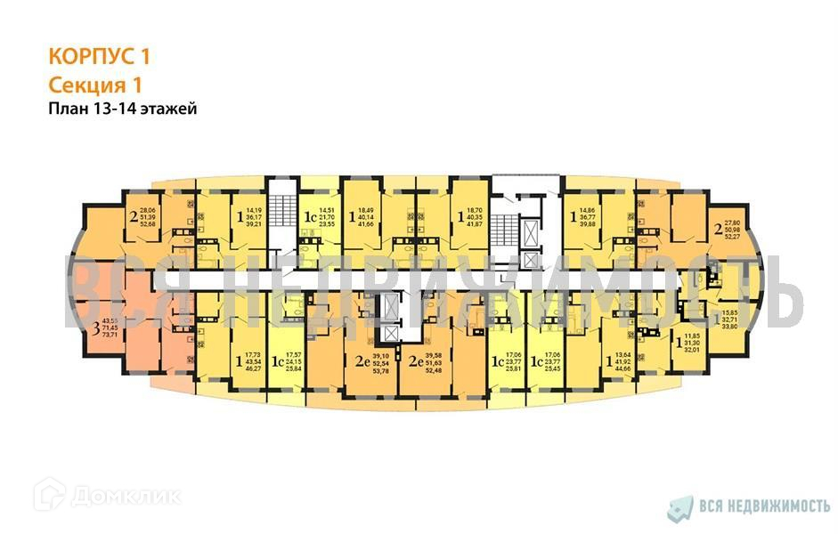 1-комнатная квартира, 44.66 м2, этаж 13 / 25, на продажу в Воронеже, улица 9 Января, 233/40