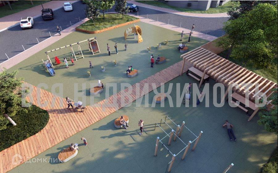 Во внутреннем дворе предусмотрены детские и спортивные площадки, места отдыха, пешеходные зоны и комплексное озеленение.