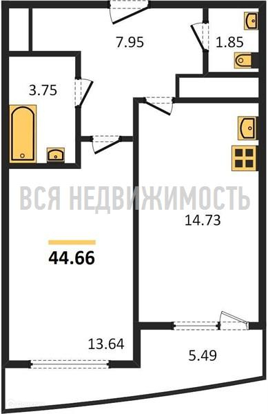 Общая площадь 44.66 м2