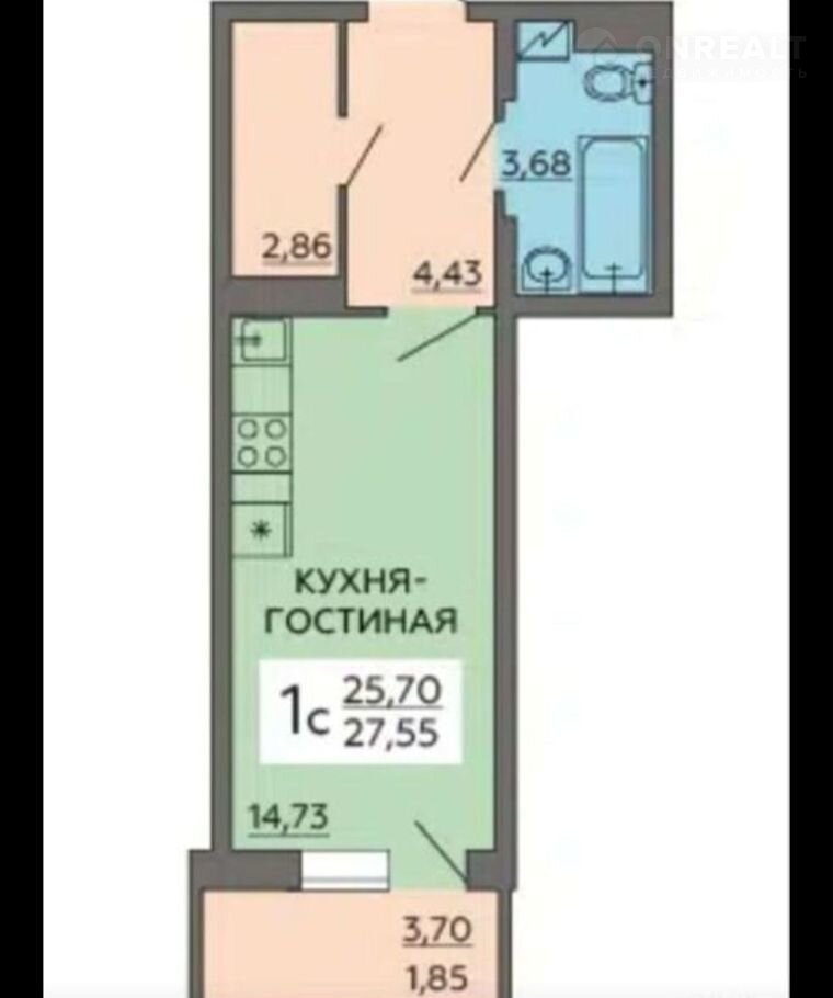 Общая площадь 27.6 м2