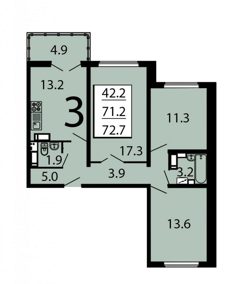 Общая площадь 73 м2