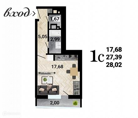 Общая площадь 28.02 м2