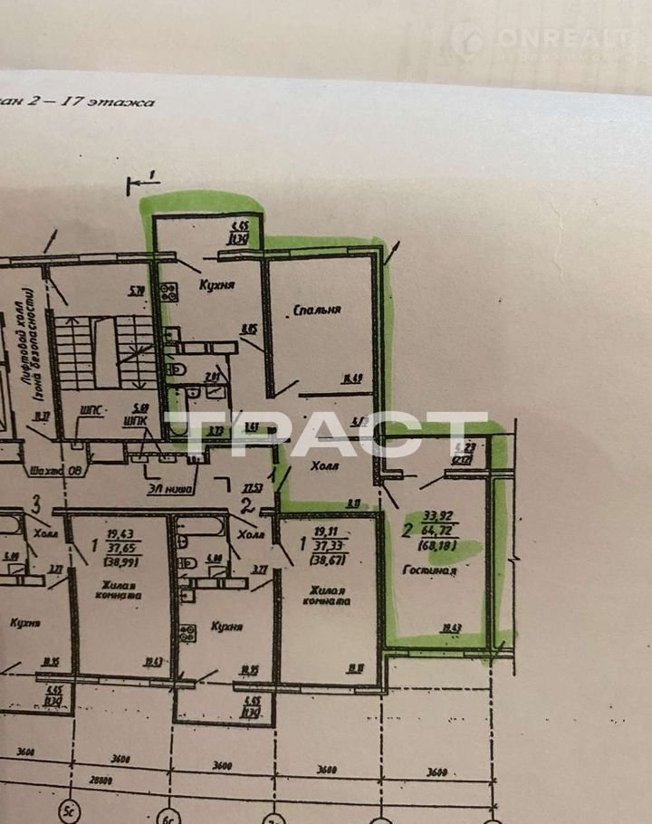 Жилая площадь 38 м2