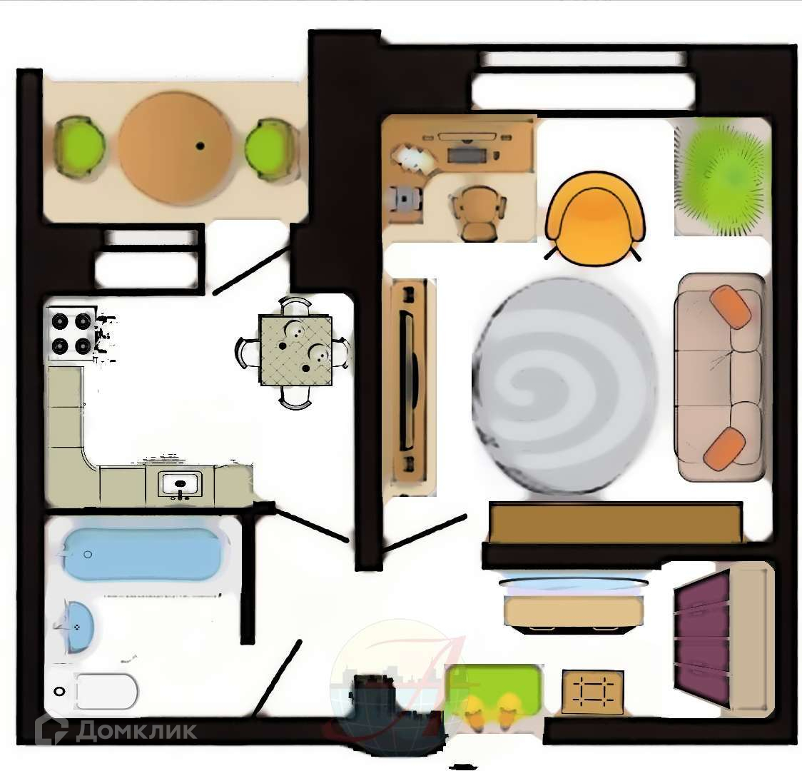 Ровненькая планировка с нишей под гардеробную.