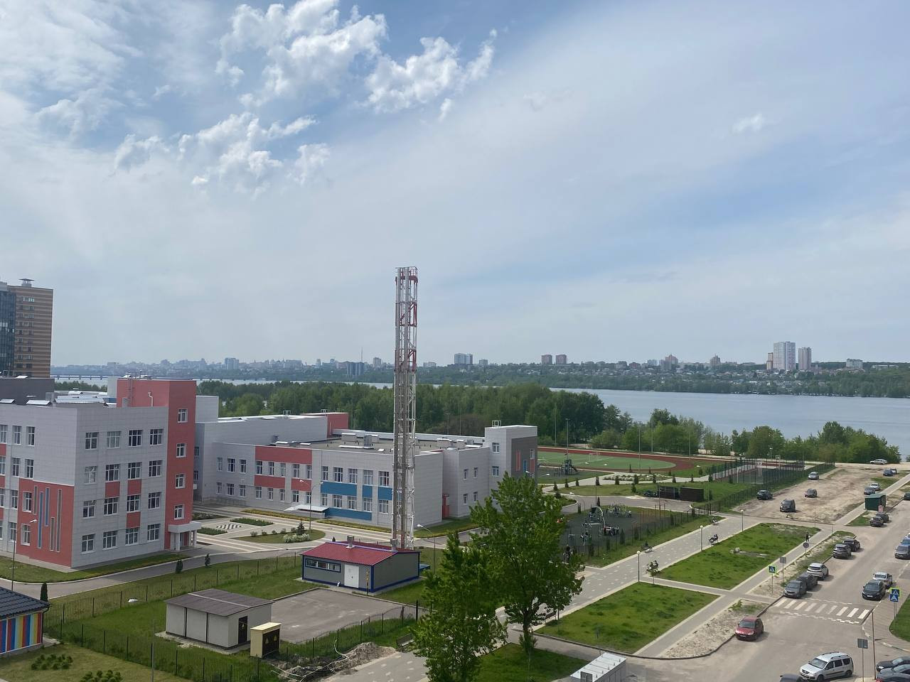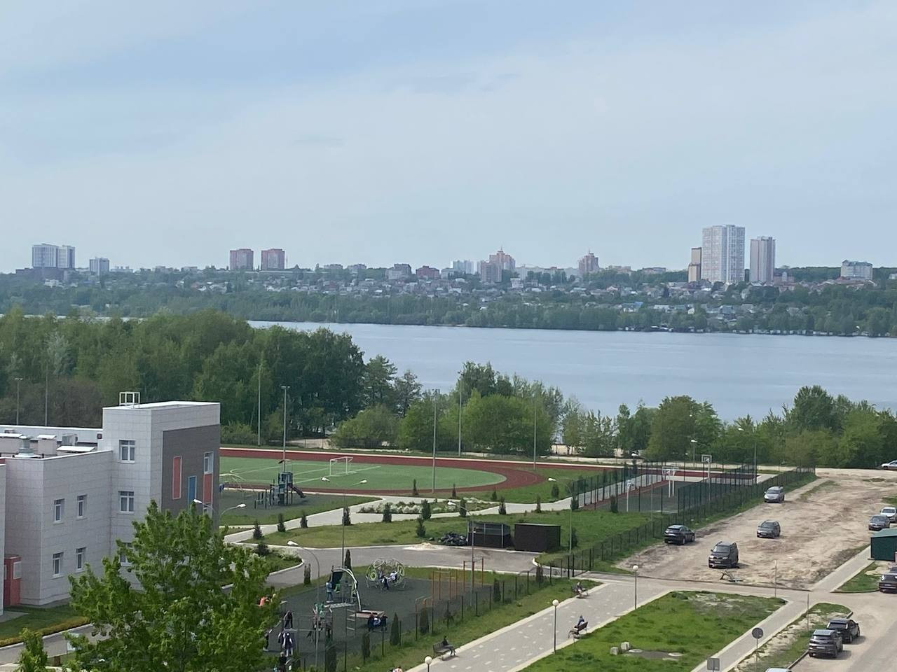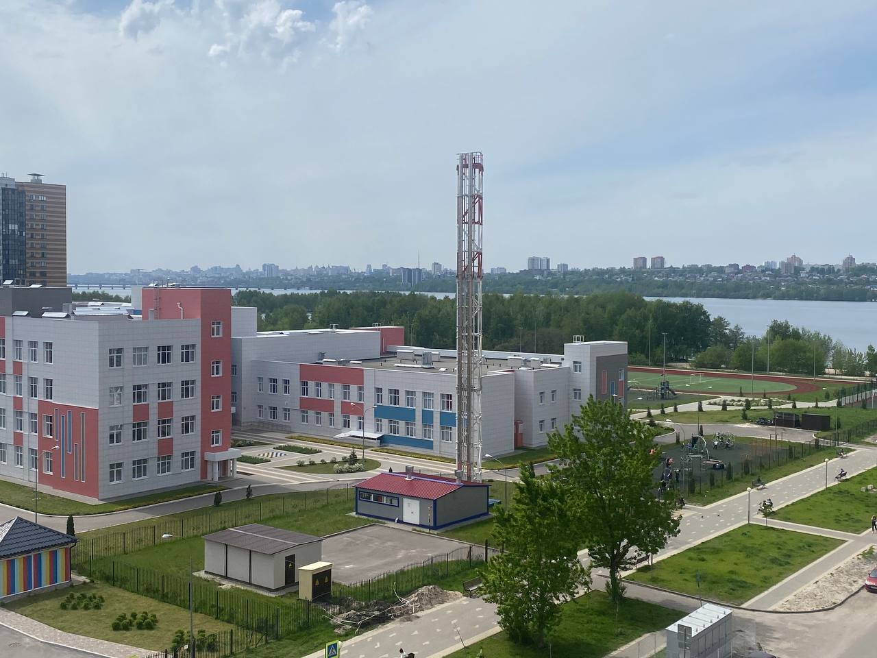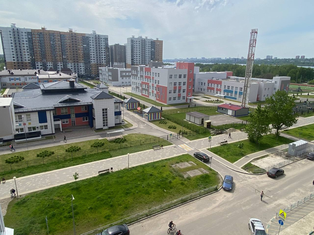 Школа и детский сад буквально под вашим окном, это видно на фото.