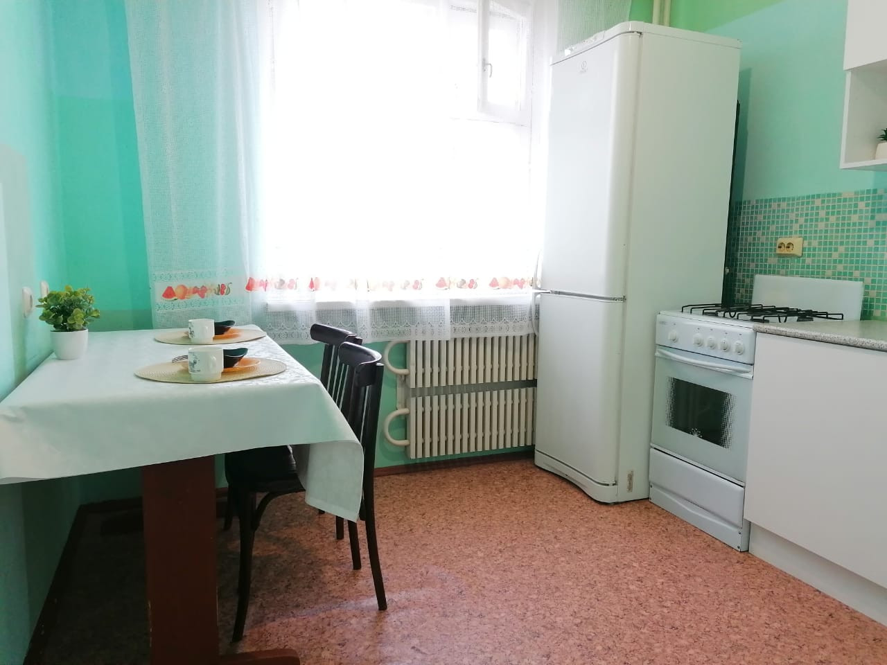 Просторная кухня ждет вас и ваших близких за праздничными посиделками. С/у раздельный.