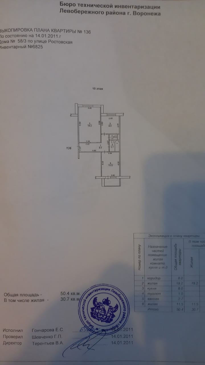 Общая площадь 50.4 м2