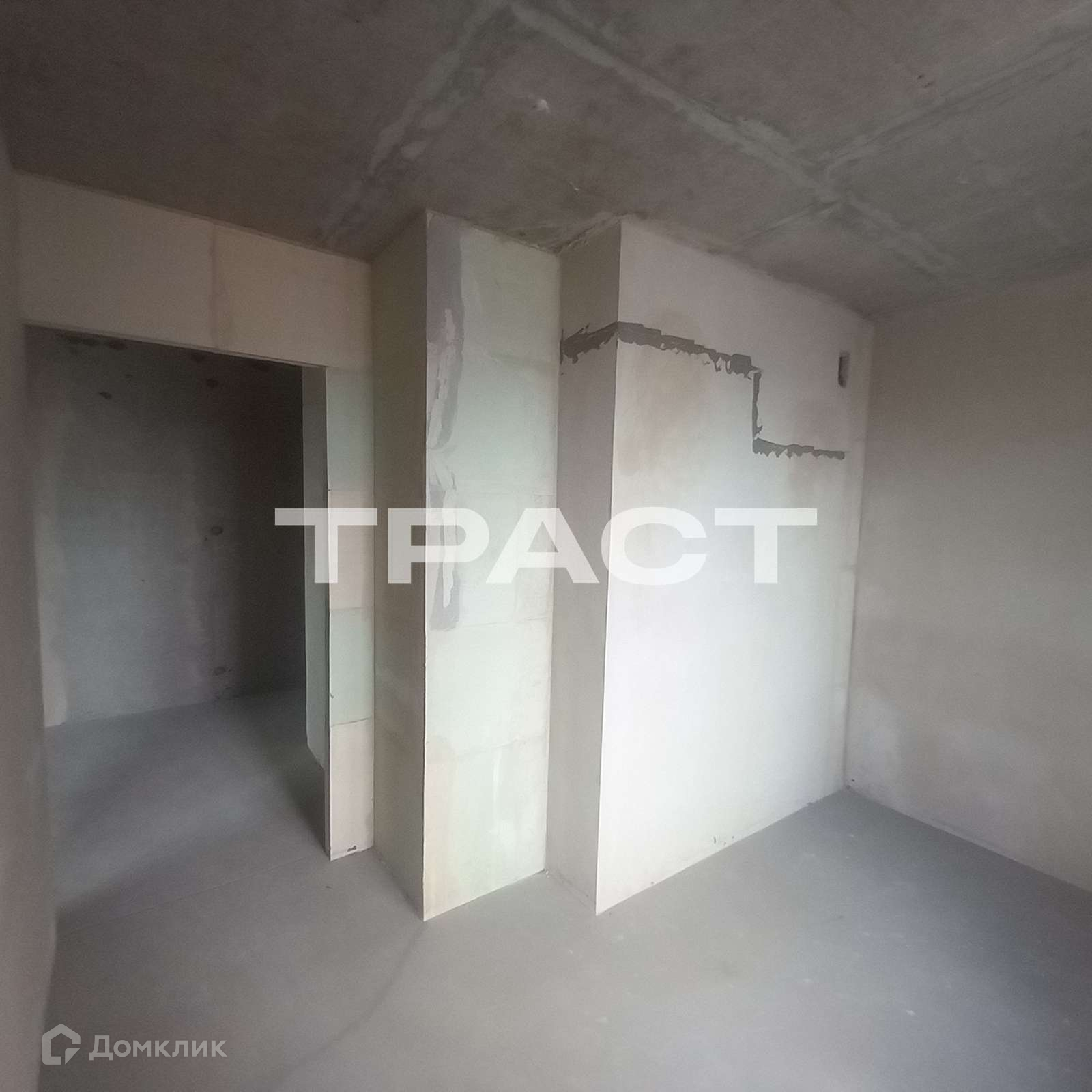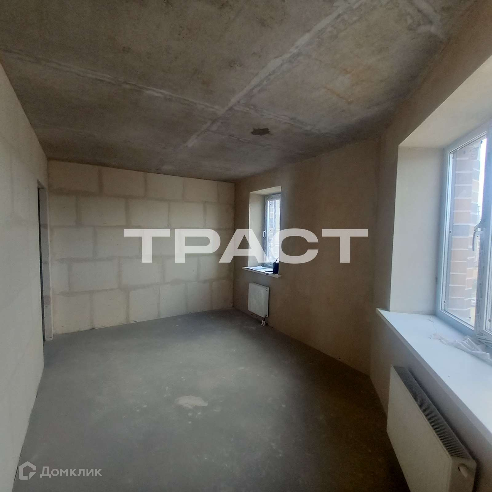 Качественная черновая отделка, стены оштукатурены, на полу стяжка. Пластиковые окна. Вода заведена в квартиру, счетчики установлены.