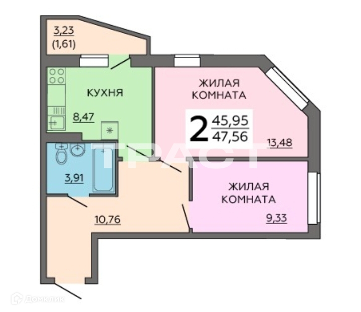 Общая площадь 47 м2
