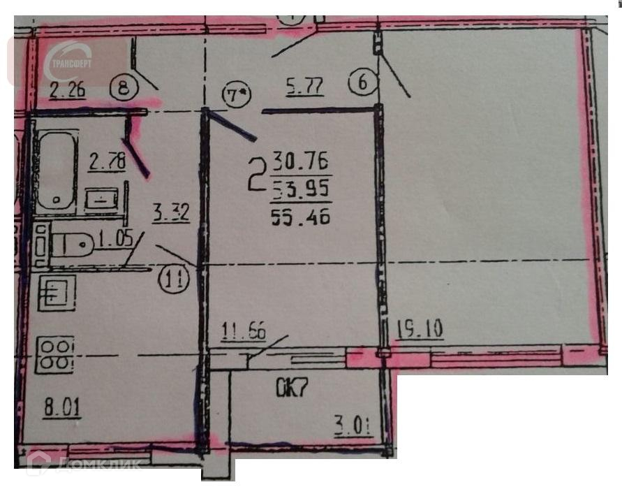 Общая площадь 54.2 м2