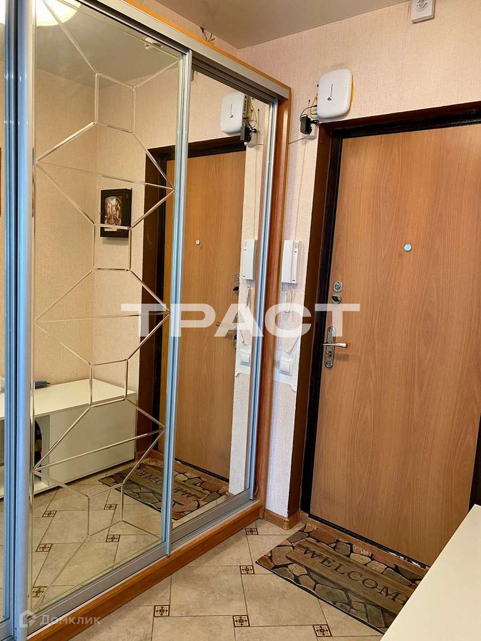 В квартире остаётся кухонный гарнитур со встраиваемой техникой, в коридоре зеркальный шкаф-купе, кондиционер в комнате.