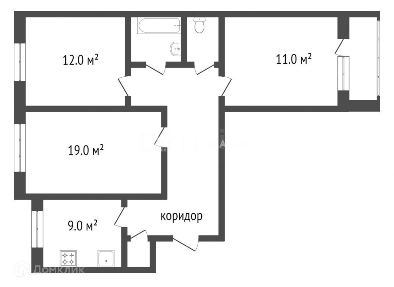 3-комнатная квартира, 62.4 м2, этаж 9 / 9, на продажу в Воронеже, улица Маршала Жукова, 3
