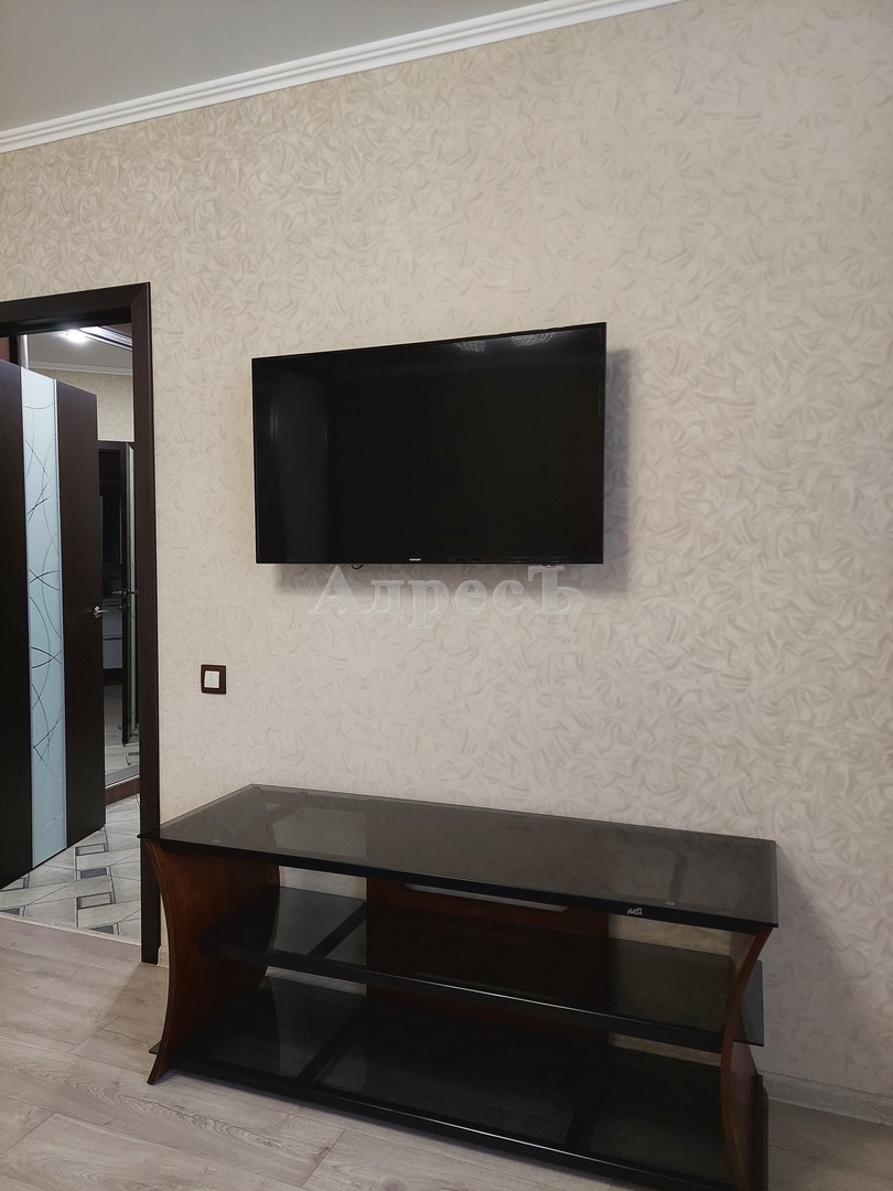 Просторная кухня, в светлых тонах. Большая удобная кровать. Телевизор, Варочная панель, Духовой шкаф. Холодильник, 2 кондиционера, шкаф-купе во всю стену и так далее.