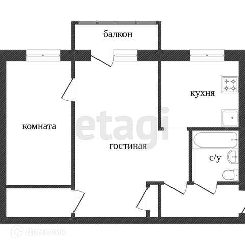 Общая площадь 44.3 м2