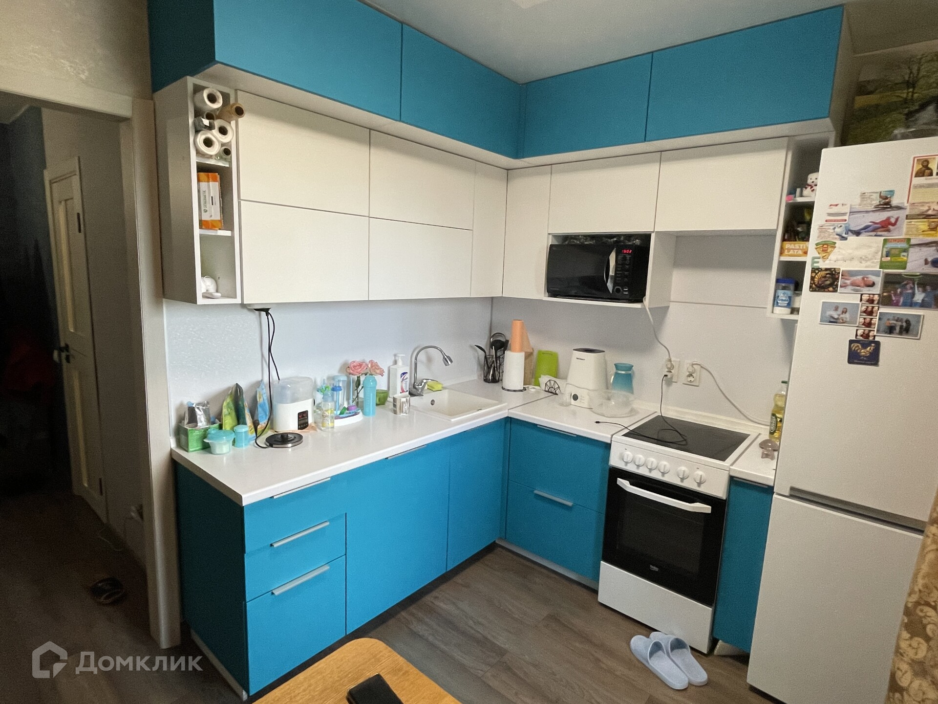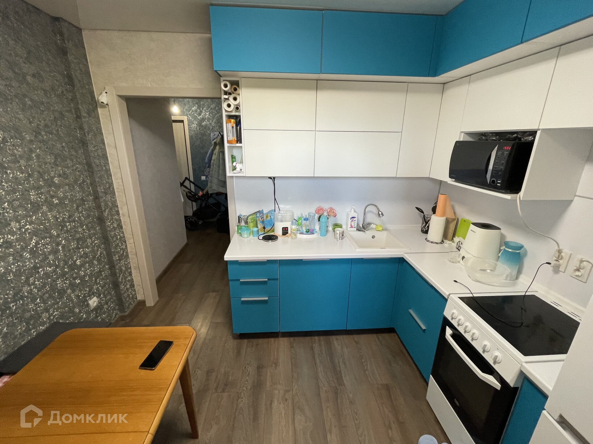 Ремонт делали для себя, на полу ламинат высокого класса, качественные обои на флизелиновой основе, стильные двери и новая кухня, ставили год назад.