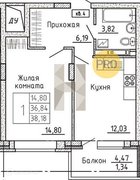 Общая площадь 38 м2