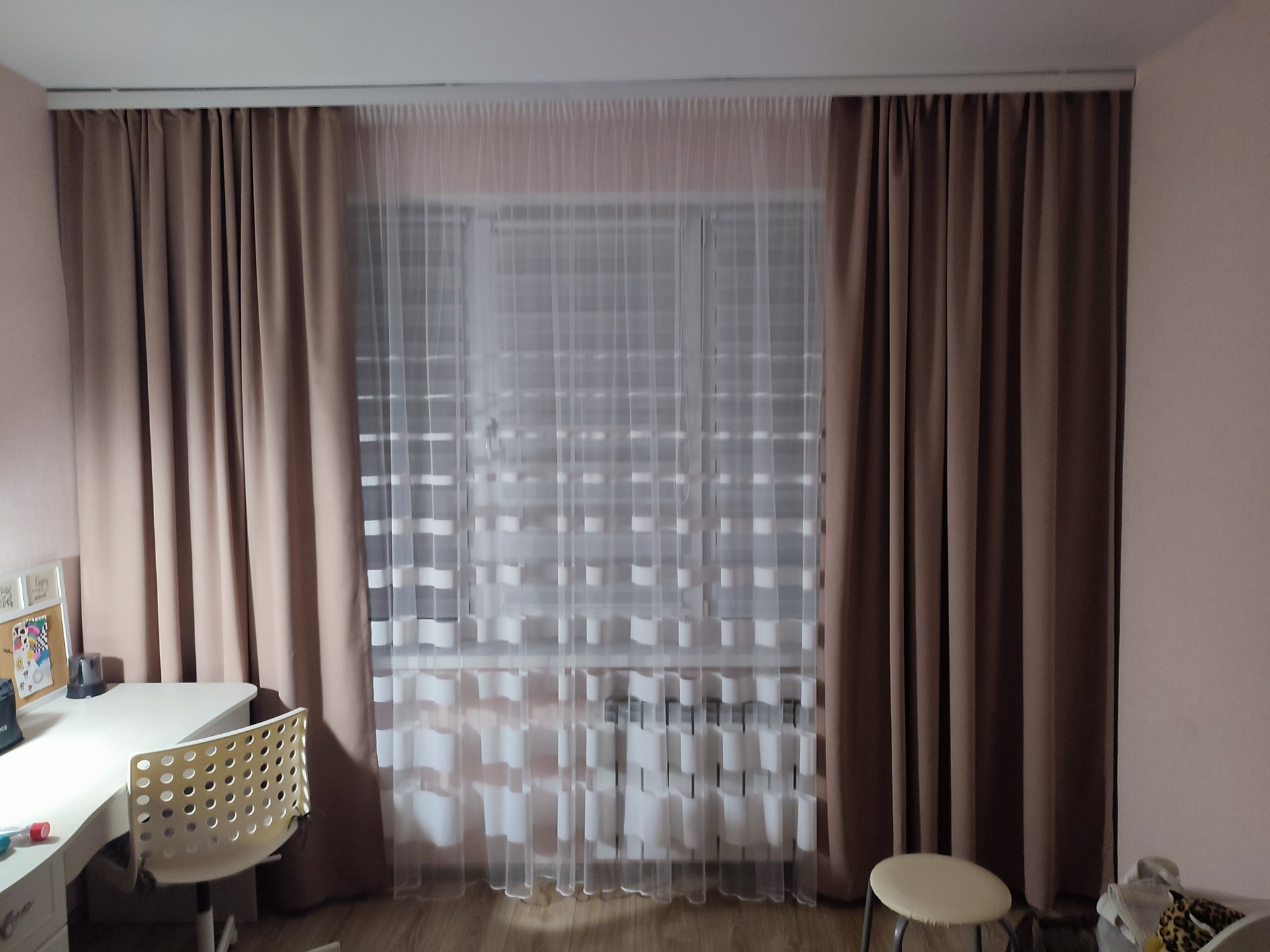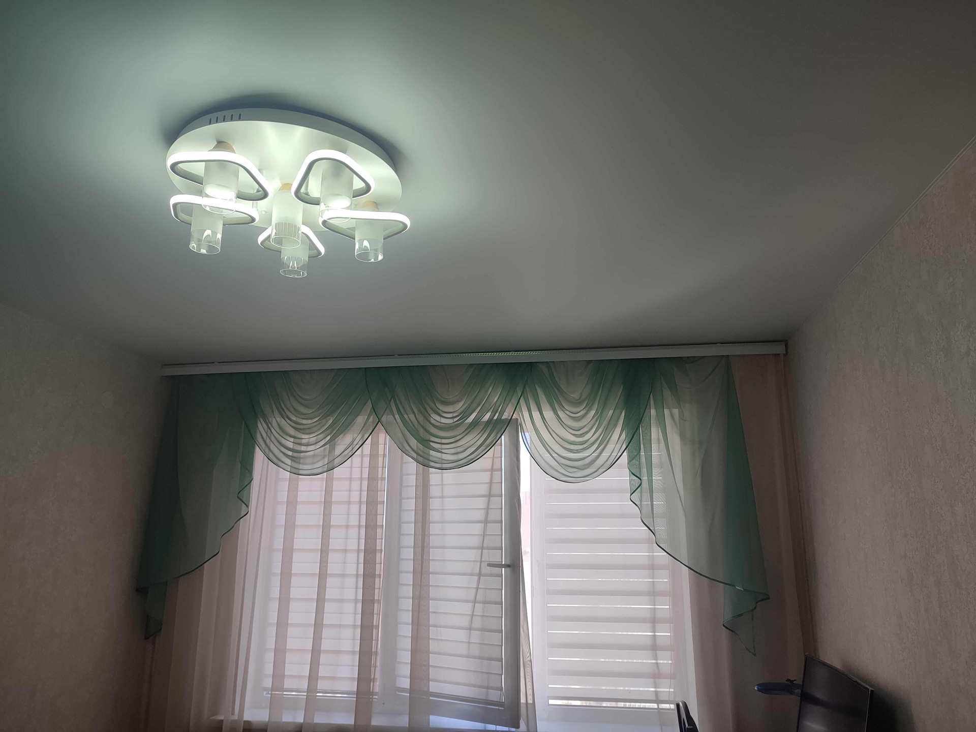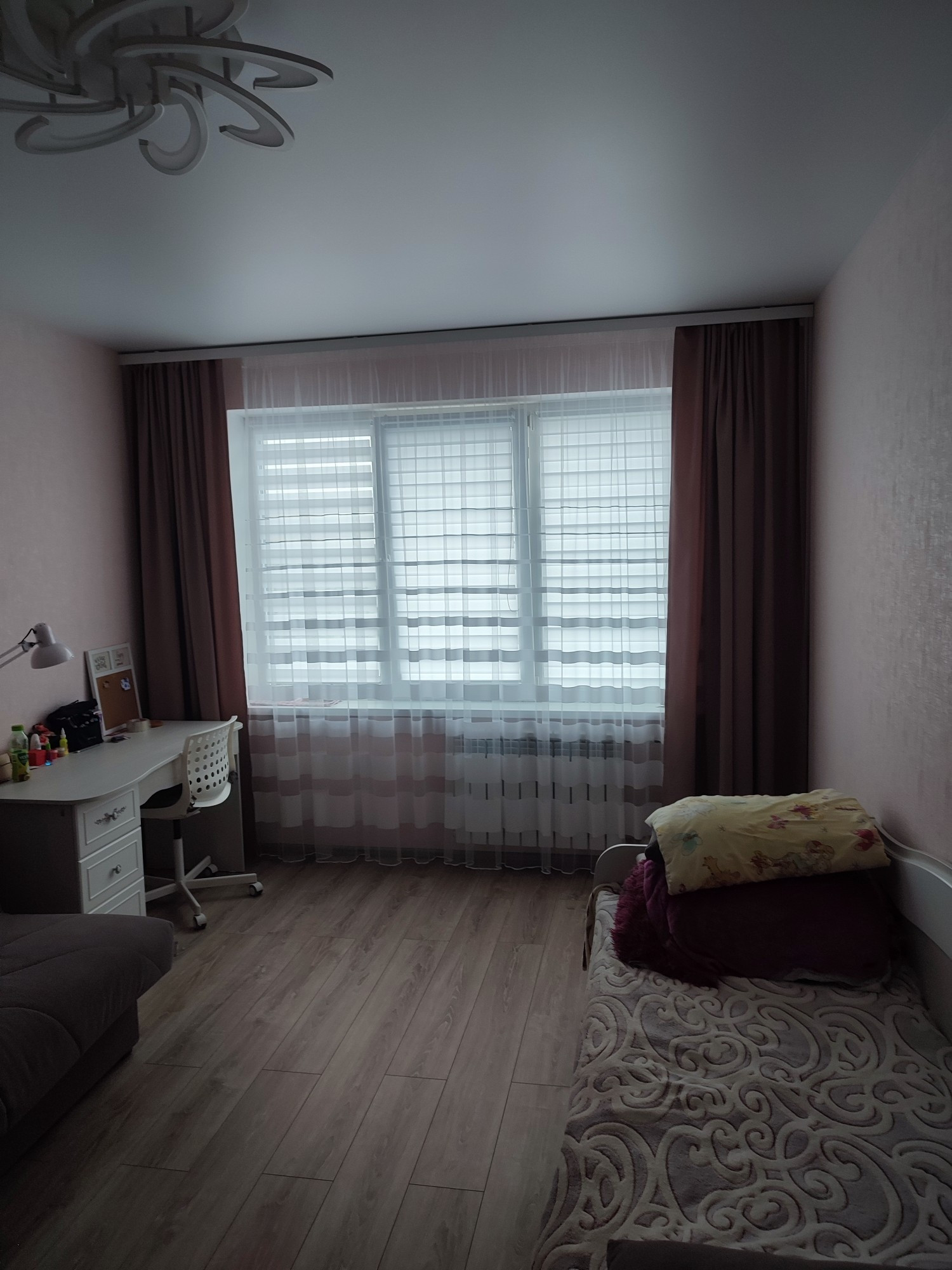 На окнах имеются дорогие жалюзи в размер окон "День-Ночь"