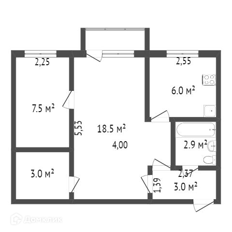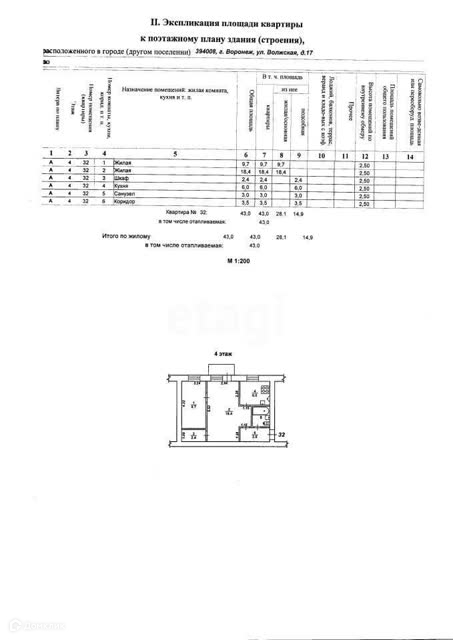Общая площадь 43 м2